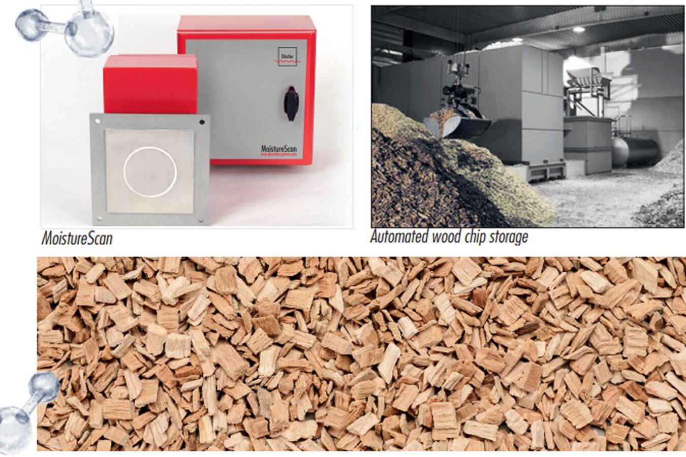 To enable the automated operation of a wood gas-fired combined heat and power plant, the MoistureScan moisture measuring device was integrated into the grab bucket of the transport robot. After the delivered wood chips have been dried to a target value of 12% moisture, they are held in intermediate storage.