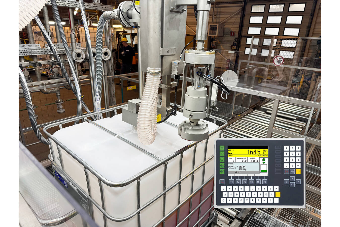 • Selbsttätige Waage (SWA) zur automatisierten Flüssigkeitsabfüllung unterschiedlicher Gebinde wie IBCs, Kanister und Fässer via Rollenbahn