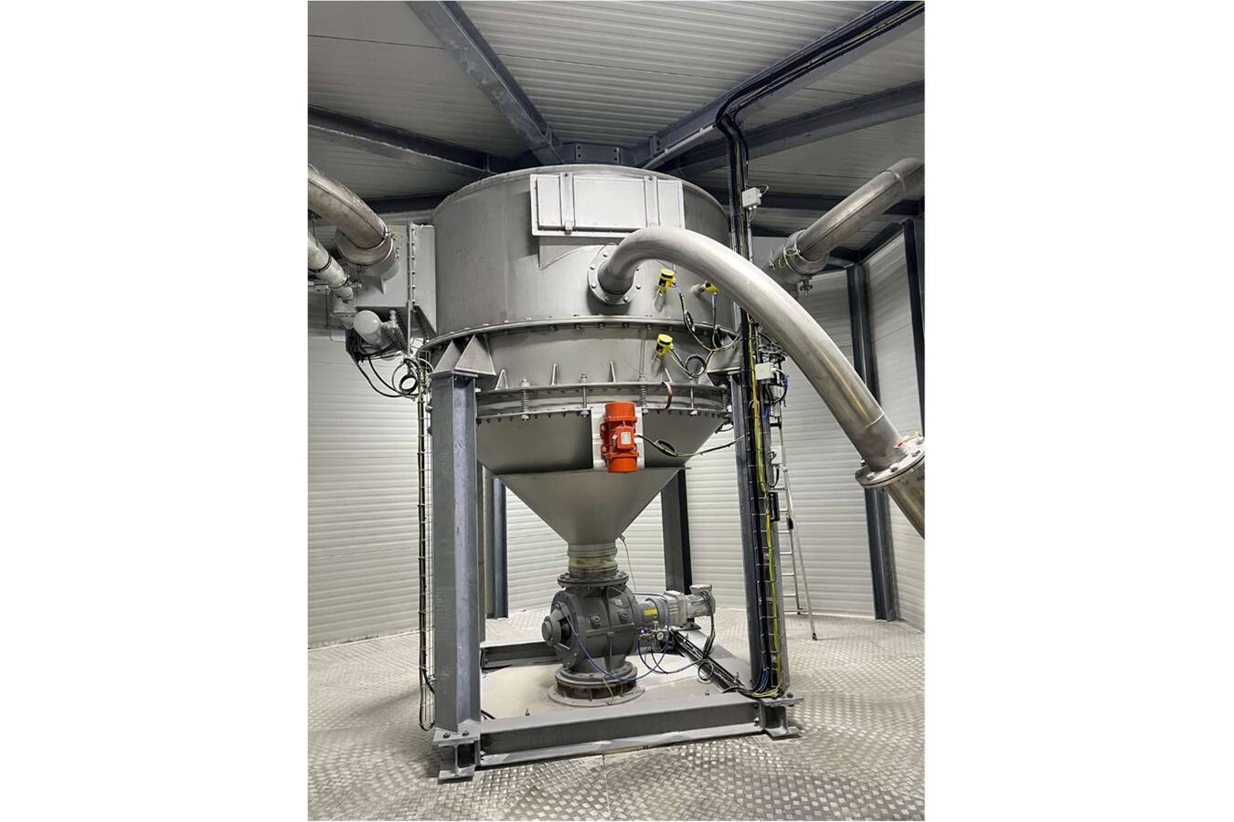 Infastaub entwickelte eine speziell angepasste, niedrige Filterausführung. Kern der Lösung ist ein spezieller, eigens flach konzipierter Schwingtrichter, der auch bei reduzierter Bauhöhe einen sicheren und kontinuierlichen Produktaustrag gewährleistet. Die Anlage ist für einen Volumenstrom von 1.500 bis 2.400 m³/h ausgelegt und sorgt für eine gesetzeskonforme Abscheidung selbst feinster Partikel.