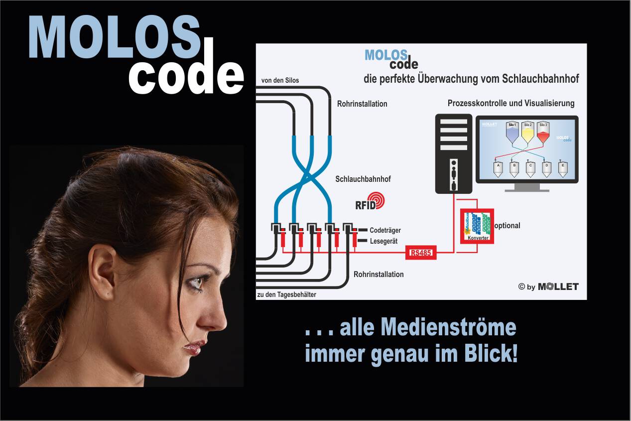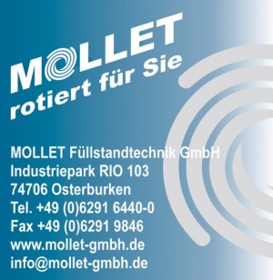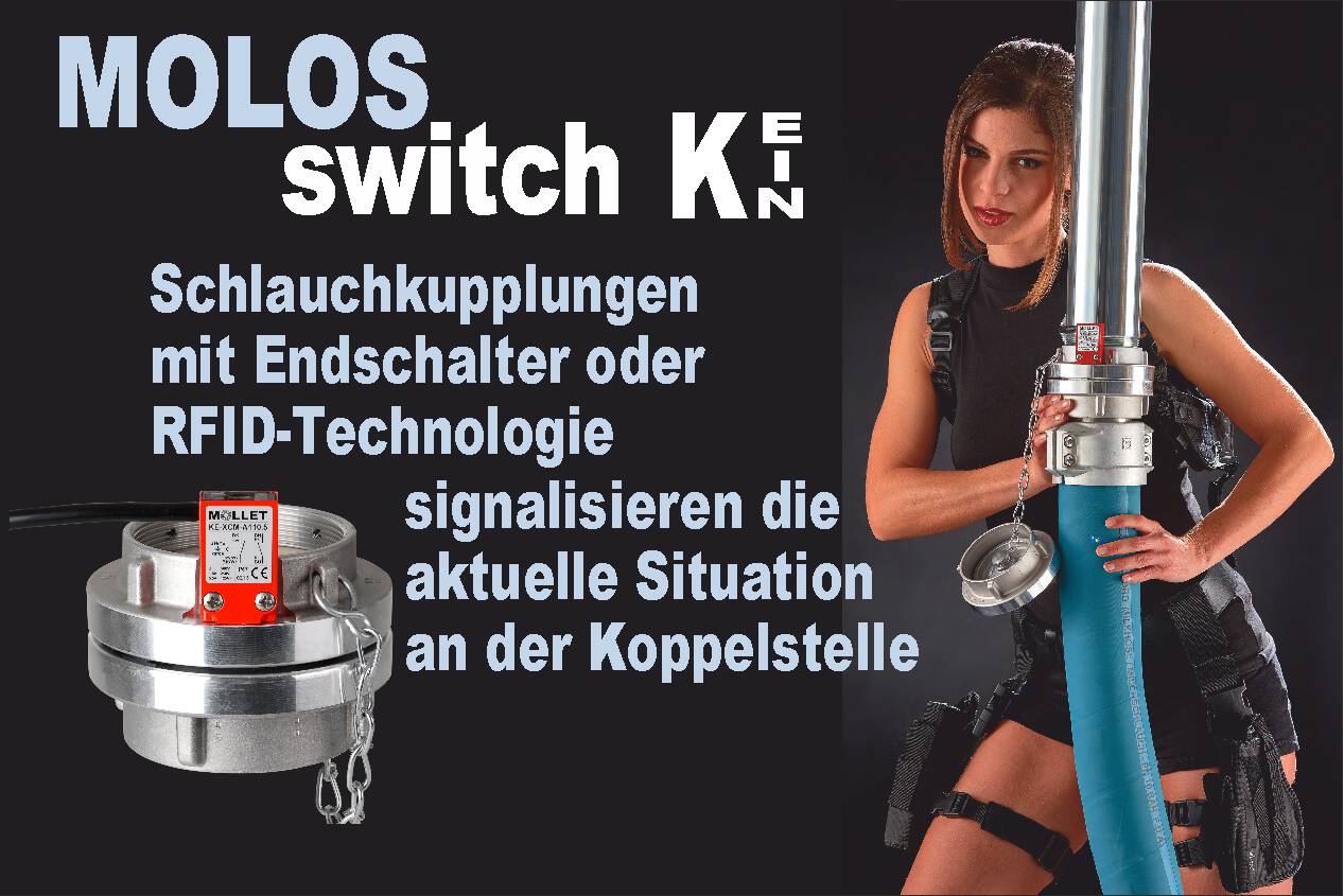 MOLLET is a producer of high-end devices for measurement and control systems. Our customers coming from many different industries such as pharmaceutical industry as well as construction industry appreciate especially our safety equipment for silos and bulk material facilities. Mollet meets customers’ highest requirements with the wide range of level control units for all kind of bulk solids. Another product line of Mollet is hose couplings with integrated limit switches or with electronic encoding systems. A stand alone silo-safe-system for fully-automated monitoring of the filling process for silos that have to be filled pneumatically by silo trailers completes the product range.