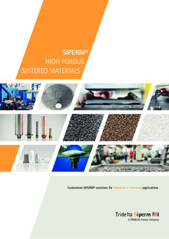 Plates, tubes, shaped parts and welding constructions made of our porous materials such as Siperm R (AISI 316L), Siperm B (CuSn10) and Siperm Hp (HDPE/UHMWPE) either as standard or according to customer’s request; Siperm ® materials are available with pore sizes from 1µm to 200µm.