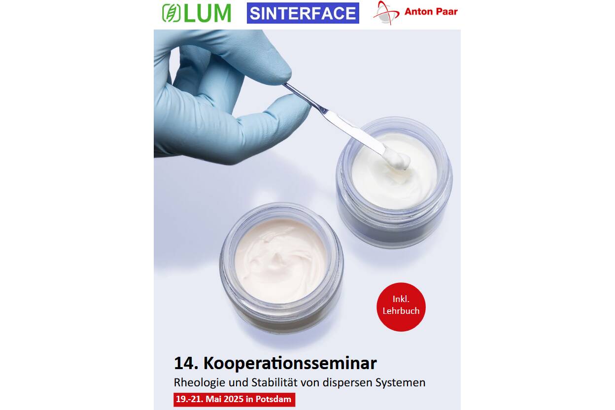 means mastering the challenges. The popular cooperation seminar on rheology, stability and particle characterisation will take place again in May. Stability tests and rheological measurements using sedimentation techniques based on STEP-Technology® are becoming increasingly important in research and development as well as in quality assurance. The rheological properties of disperse systems and the adsorption processes at their boundary phases are decisive for their stability, processing behaviour and performance properties. See the link to the event below for more information