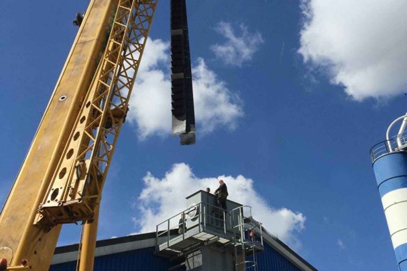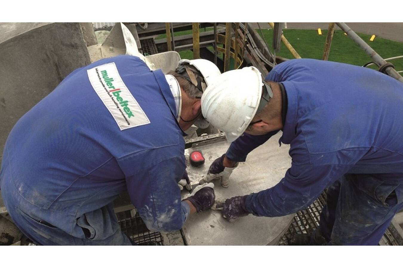 Muller Beltex was asked to inspect and improve a bucket elevator that has reached end of life. For maximum reliability and efficiency a new elevator was designed and installed. Ready Beton has three concrete plants in Belgium and is part of the de Hoop Group Terneuzen. Headquartered in Antwerp, they produce 250,000 m3 tonnes of concrete per year in Belgium. In one of Ready Beton’s Belgian concrete plants, a bucket elevator is used to transport the raw materials. This very important piece of equipment was experiencing more and more unplanned downtime as the bucket elevator had reached the end of its life cycle. End of the elevator’s service life When the first signs showed that the elevator was becoming less reliable, Muller Beltex was asked to get the plant up and running again. After a comprehensive inspection, we realised that the bucket elevator housing was starting to rust in several places. The reason for this was that the conveyed product had a high salt content and the discharge plate was badly worn. The deflection roller had also reached the end of its service life. Temporary improvement To bridge the gap until a new bucket