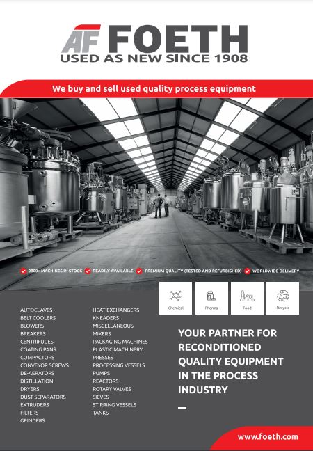 A. Foeth B.V. has been active in the purchase and sale of used process equipment in Europe since 1908.