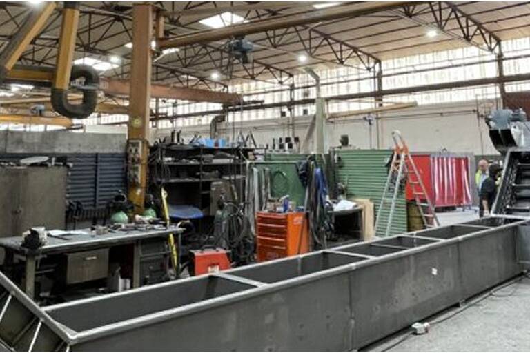 Implementation of a submerged drag conveyor (redler) for effective cooling and transport. At Sinfimasa, we specialize in providing complete and customized solutions for bulk material handling, as evidenced by our latest project: a submerged chain conveyor specifically designed for a leading biomass boiler manufacturer, for turnkey plant construction in Chile. This system efficiently evacuates the ashes generated during combustion and cools them, ensuring optimal and safe handling of the by-product. High-temperature ash extraction The main challenge in this project was to develop a system that could handle ashes directly from the furnace exit to their evacuation point. Part of the conveyor was designed to be submerged in water, which helped control the temperature of the ashes. Given the high temperature and humidity environment, building a robust conveyor with special attention to chain tensioning was crucial to ensure precise guidance and extended durability. Moreover, a high-quality, corrosion-resistant chain was used due to its continuous contact