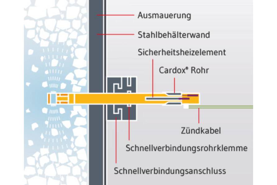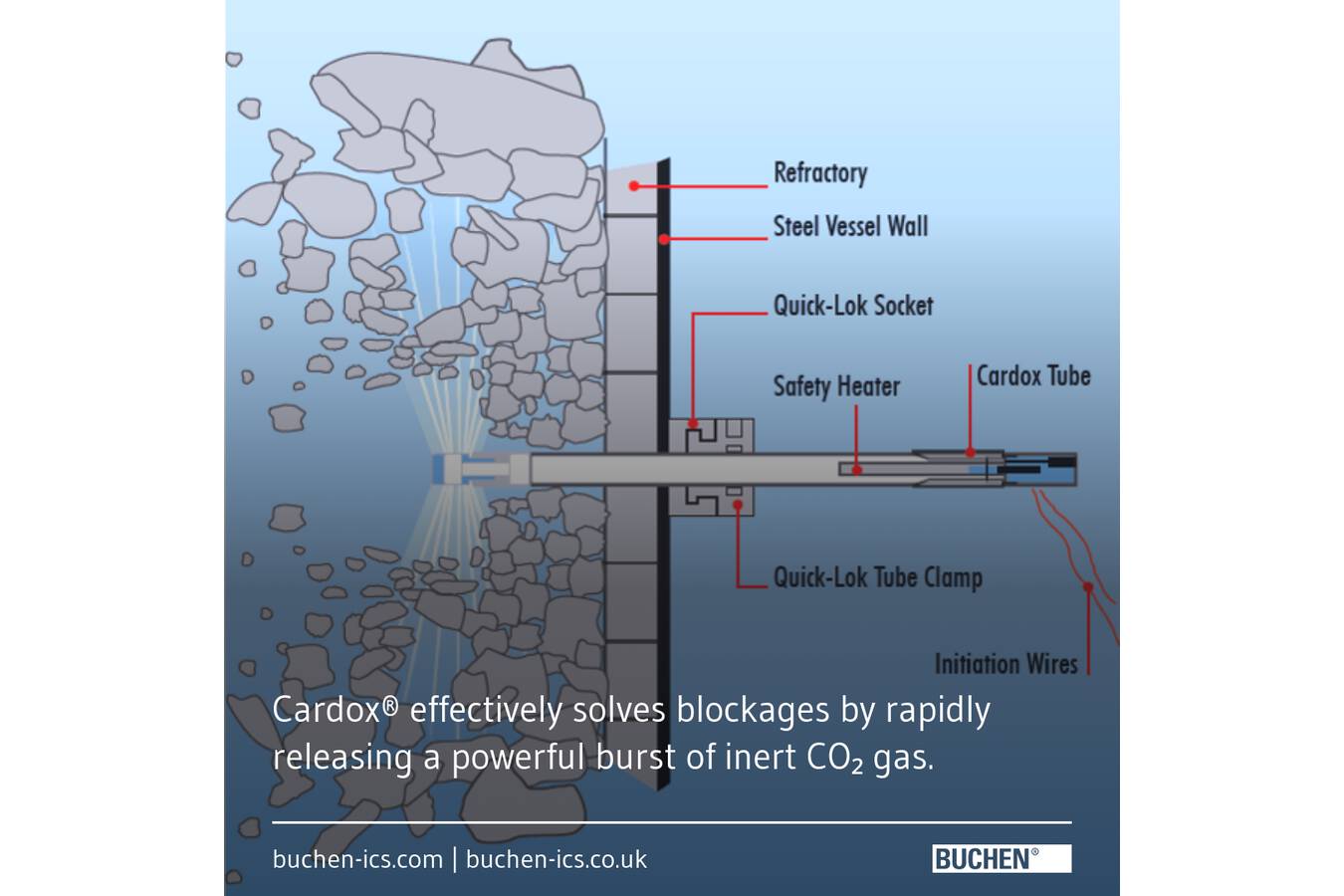 A controlled carbon dioxide explosion with pressures up to 3000 Bar breaks compacted material in silos and storage vessels Our Cardox® system breaks up compacted material in storage vessels by suddenly releasing liquid carbon dioxide. This method uses high strength, reusable steel tubes filled with liquid carbon dioxide (CO2). This is activated by a small electric charge causing it to expand and create a powerful force of up to 3,000 bar. Several tonnes of material can be detached with a single detonation. The Cardox® system can even be used while production continues as normal if the vessels have been fitted out with permanent tube sockets.