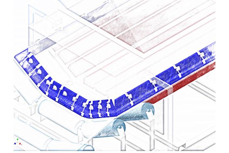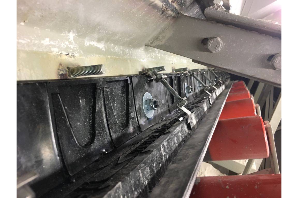 AirScrape in a clinker Vessel discharger Dust-, spillage- and maintenance-free conveyor belt skirting. Contact-free and thus frictionless by using a Venturi effect to prevent spillage.