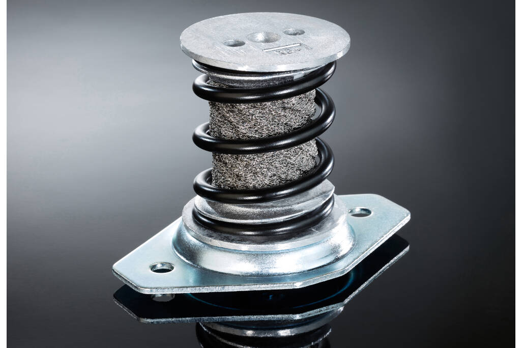 RG+ Schwingungstechnik GmbH offers a wealth of expertise in vibration-decoupling machine and component mountings. This year again at the Solids in Dortmund. Niche product for specific applications Many users will not think of knitted wire mesh when they think of machine feet and vibration dampers. The often cylindrically shaped pressed parts, which are more reminiscent of a kitchen sponge or pot cleaner, are known as a niche product to a rather small circle of users. ”Everyone who gets to know the product finds it exciting at first glance. However, vibration dampers are not what people spend a lot of time on. That’s where the standard is taken. The question is whether it makes sense to use a knitted wire mesh for the corresponding application,” says Markus Günther, development engineer at RG+. The areas of application are not as limited as you might think. Heat exchangers, catalytic converters or silencers are applications that are often decoupled using stainless steel vibration dampers. Pumps, mixers or crushers also fall into this area of application. This is where the circle closes to the trade fairs for granulate,