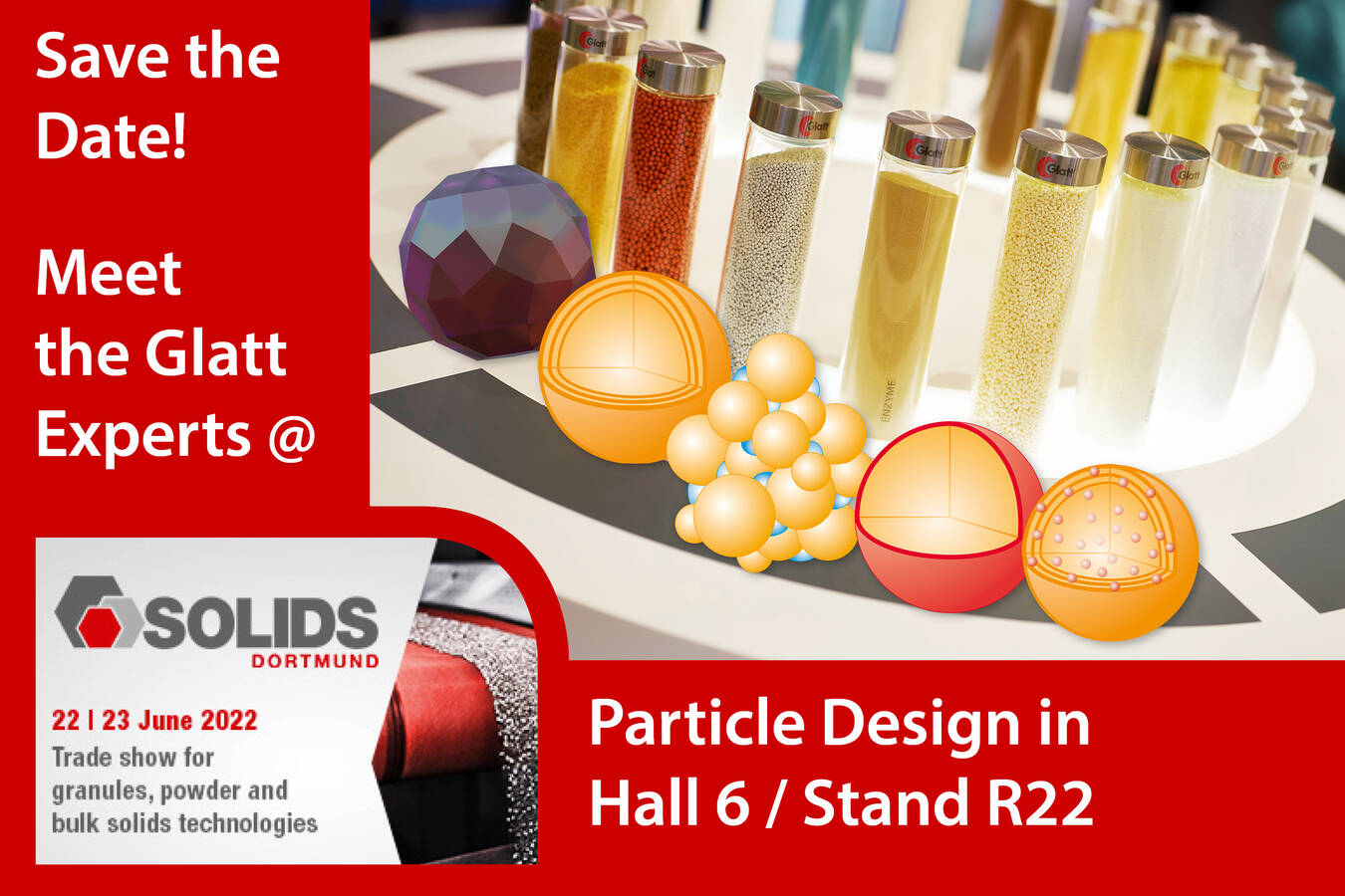 Technologies for particle design + plant engineering: Solids 6/R22 Particle sizes from nano to macro: Homogeneous powders and flowable, abrasion-resistant granules and pellets from solid and/or liquid raw materials