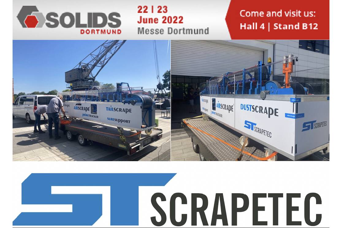 On June 22/23, 2022, Solids will come to Dortmund and with it many new products and surprises. Everything around the conveyor belt transfers, which makes the work easier and safer. Scrapetec Still a young company, but known worldwide. We owe this to our innovation the AirScrape. A non-contact side seal for conveyor belt transfers points that is both non-wearing and requires no maintenance. Once properly installed, this runs for years and keeps the transfers dust and spill free. The large mines in South America caught on relatively quickly and are using Scrapetec’s products more and more. The demand at the last trade fair in Chile surprised us all. But cement, gypsum and power plants worldwide are also recognizing the advantages of wear- and maintenance-free sealing. Cost saving, made simple. With the upcoming Solids, Scrapetec will also take another big step into conveyor belt technology 4.0. Come by and have a look at the newest innovation from Scrapetec. We are waiting for you in hall 4, booth B12.