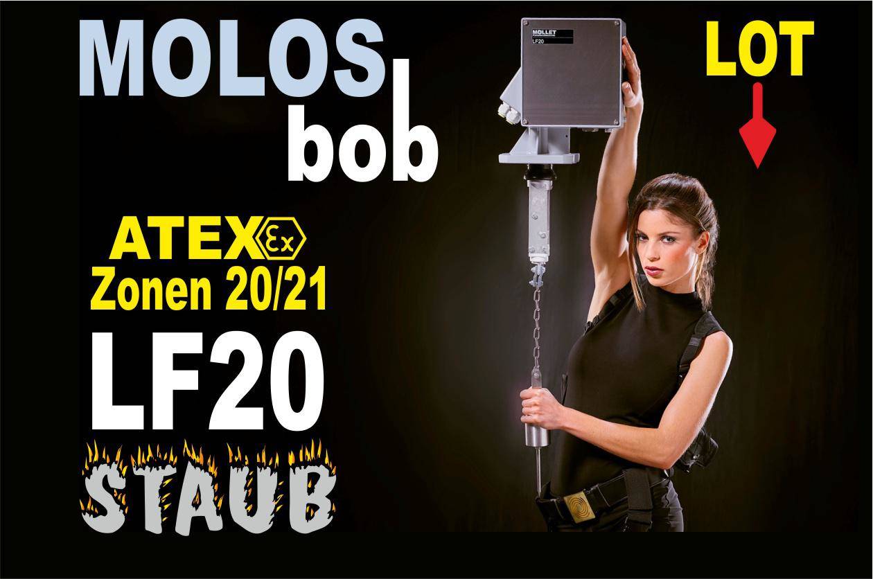 Continuous level measurement in potentially explosive atmospheres In storage bins of food, like sugar, grain or flour the filling levels are mostly automatically detected. As these bulk goods generate a potentially explosive atmosphere, only measuring devices may be used for level measurement applications, that are in compliance with the actual valid European ATEX directives. MOLLET Füllstandtechnik offers you the Yo-Yo measuring system MOLOSbob LF20 for continuous level measurement with the ATEX approval needed for these kinds of application. The compact and robust measuring device with a tape made of stainless steel provides precise measurement results up to a silo height of 42 m independent of bulk goods characteristics like permittivity, dust, moisture, conductivity or grain size. Easiest installation and a onetime parameterization, that does not have to be adjusted due to changed processing conditions, are further advantages of this technology.