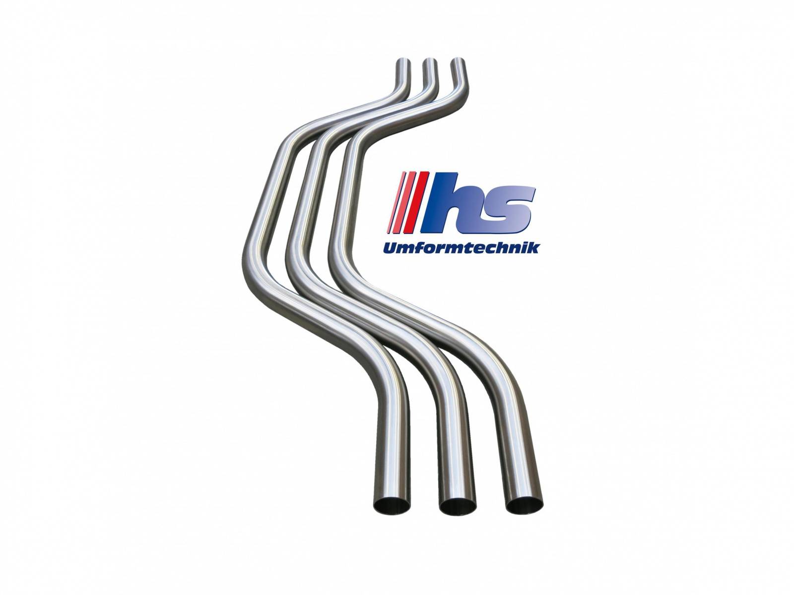 Pipe bends, Pipe Couplings, Branch Parts, Reducers, Coupling Stations HS Umformtechnik produces with state-of-the-art machinery, in total: * 9 CNC mandrel bending machines * 2 trumpf tube lasers * 1 welding robot * 1 cutting robot Production according to the highest quality requirements of: * Standard dimensions in large numbers - as well as: * Custom made according to your drawing / sample eg. This means for your purchase: - fast delivery, from stock - at a good price-performance ratio - no minimum order quantity Stainless steel pipe bends - Material: AISI 304 / 1.4301 - also in highly wear-resistant version - Diameter 38.0 mm - 206.0 mm - Radii: 75 mm - 1500 mm Pipe couplings type DVK 6 - for suction conveying - Diameter: 33.7 mm - 110.0 mm Pipe Couplings Type DVK-HD® - for pressure conveying - Diameter: 60.3 mm - 206.0 mm Stainless steel branch pipes, 30 °, 45 °, 90 ° - Material: AISI 304 / 1.4301 - also in highly wear-resistant version - Diameter: 38.0 mm - 206.0 mm Stainless steel reducers - Material: AISI 304 / 1.4301 -