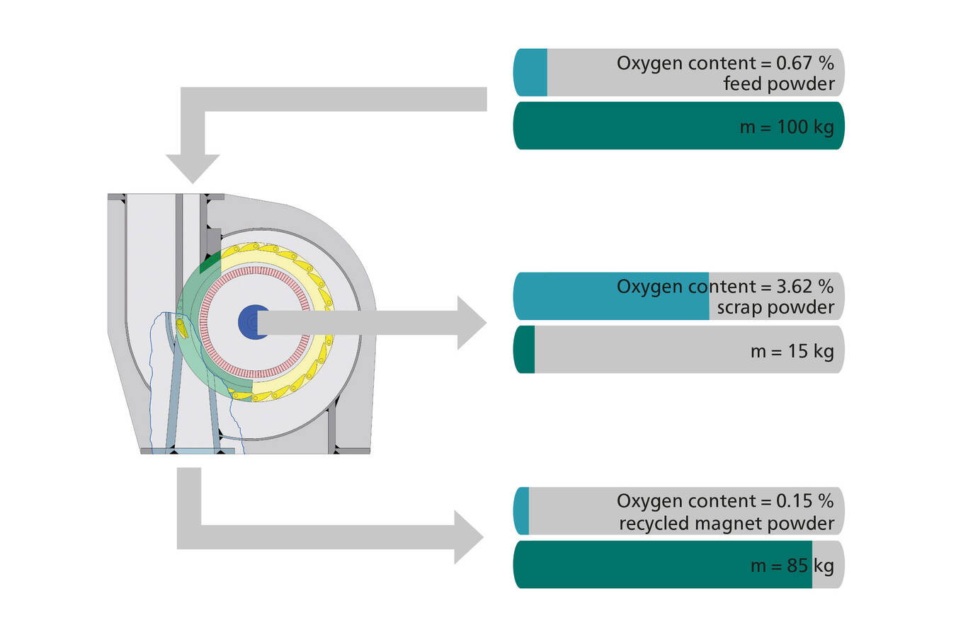 Recycling and the sustainable use of valuable raw materials are playing an increasingly important role in the area of rare earth magnets. Rare earth alloys and the permanent magnets made from them are becoming increasingly important as the use of electromobility grows. These materials are of crucial importance for the efficiency and performance of electric motors, generators, and other industrial applications. To ensure the sustainable use of these valuable raw materials and at the same time protect the environment, recycling is also playing an increasingly important role in this area. Recycled magnets can be divided into two main categories: On the one hand, waste is generated during the production of magnets, and on the other hand, classic returns from electric motors, generators or other applications are recycled. Magnet waste from production is usually cutting waste from the mechanical processing of magnets. To be able to reincorporate this material into the production process, it is crucial to remove any impurities such as oxides and carbides. Electric motors and generators generally have