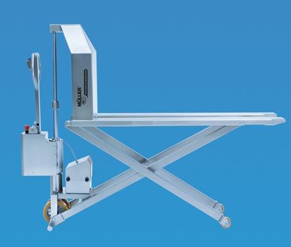 Müller presents three units. All functions on the AGILO series are manually. This makes all units lightweight, flexible and cost effective. To facilitate the operator handling, pallet trucks and scissor lift trucks of the AGILO series are equipped with quick raising action and soft landing on floor surfaces.