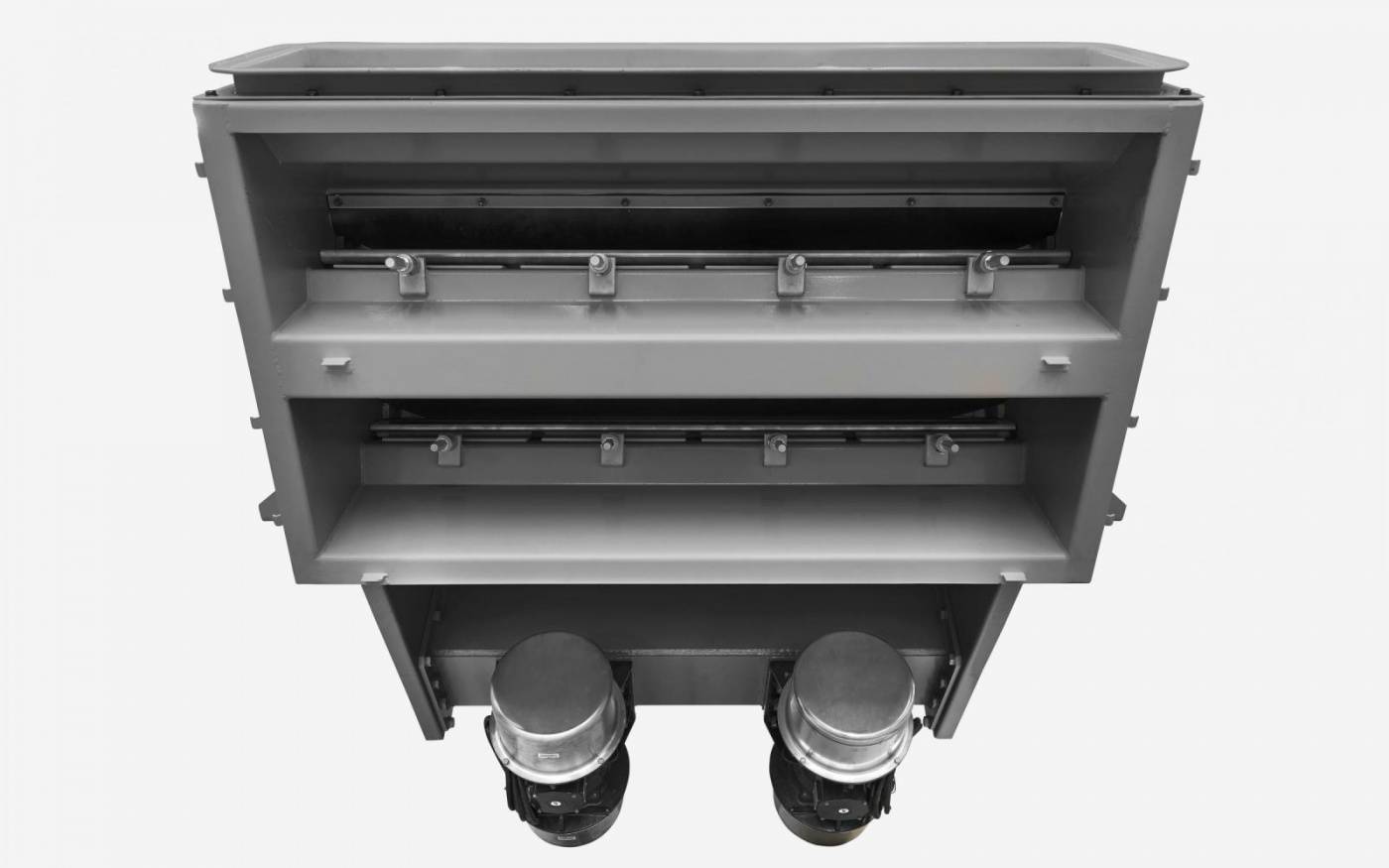 2.At the same time, two motors, rotating in the opposite direction, ensure a linear movement of the screen (as is the case with a vibrating feeder).