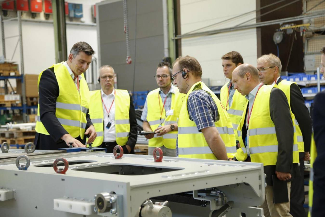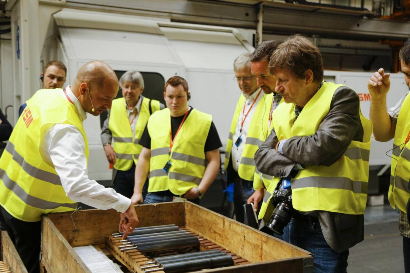 During a tour of the production plant in Salem, visitors were able to witness the high production depth and competence in action. Among other things, they could observe the modern painting facility, in which up to 7 metre long components weighing up to 20 tonnes are sand-blasted and painted or powder-coated. In recent years, HSM has also continuously invested in automation in the welding area and commissioned the eleventh model of its robot welding system, with a load capacity of up to 12 tonnes.