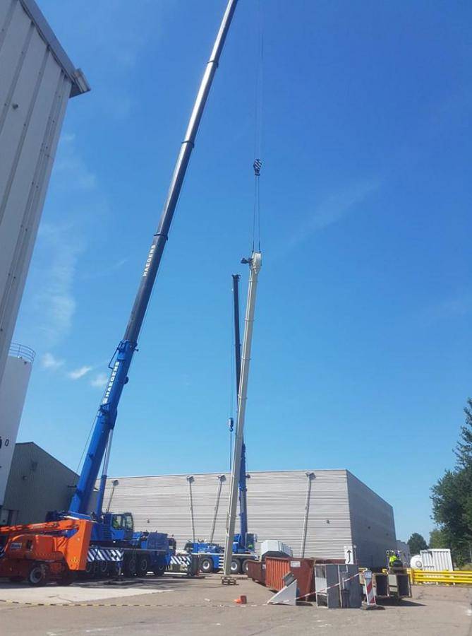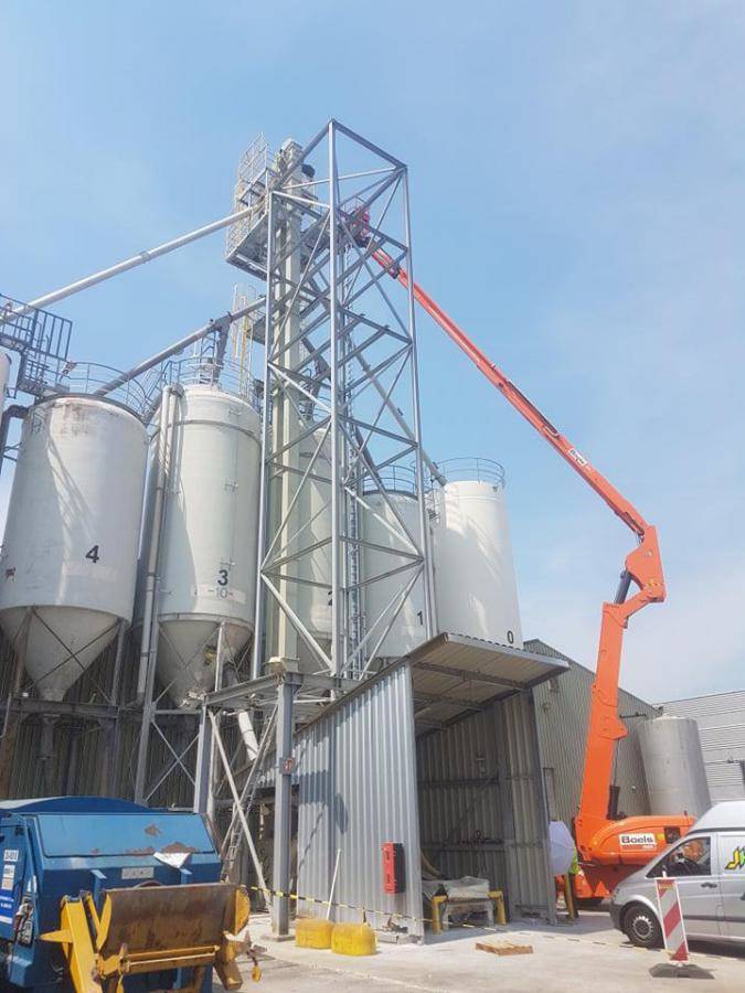 Despite the heat, our technicians Harald Ozinga and Gerke Mulder have installed the JHE528 Elevator at ICL in Heerlen. The elevator has a capacity of 60 m³/hour and transports fertilizers.