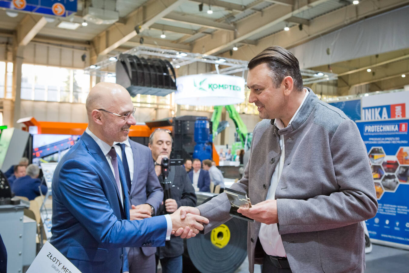 “The baling press V-Press 860 TimeSave is our answer to market requirements”, explained Darek Mainka, Head of Environmental Technology Sales at HSM Polska who accepted the prize on behalf of HSM from the Polish Environment Minister, Michał Kurtyka. “There are quite often problems with the loading times on vertical baling presses. We developed a new solution, namely the combination of a vertical baling press and automatic loading. We have a lifting/tilting device which can empty the collection cart directly into the baling press and the whole loading and pressing process runs automatically. This is currently the only baling press on the market with this solution, patented by HSM.“