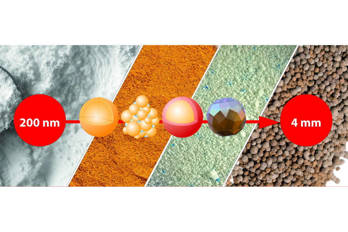 Although fluid bed and spouted bed technologies can be used to transform liquids and powders into dust-free granules with good flow properties, Glatt powder synthesis in a pulsating gas stream can also be applied to produce and coat nano- and micropowders. Equipped with tailored particle properties, these are used in numerous high-performance materials, such as new battery materials, catalysts or medical ceramics.