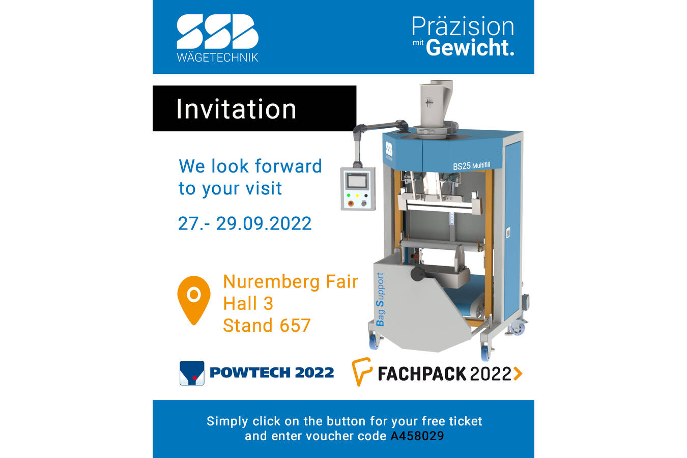 SSB Weighing Technology invites you to our booth 657, Hall 3 at Powtech 2022 in Nuremberg.