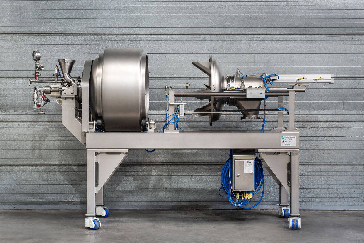 The Gull Wing mixer is a 1000-liter batch capacity mixer with hatches resembling luxury car doors or sea ”gull” wings. The double hatch feature was initially created for a client who sought an easier method for cleaning and has now become a standard option available for all the mixers on our product line.