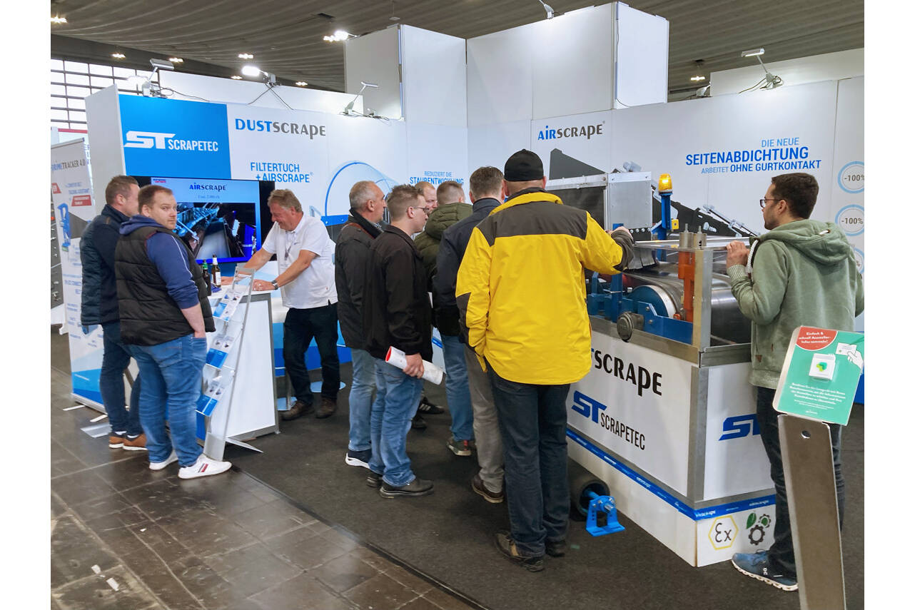 The high demand for such dust protection solutions was evident in the number of visitors at the booth. In addition to the high number of interested parties from the domestic market, ScrapeTec’s partners from India and Brazil were also present.”We were once again thrilled by the rush of visitors and were able to establish many new contacts. In addition, existing and very satisfied customers from Germany also came with colleagues, i.e. responsible persons from other conveyor systems of the company, so that they could get a first-hand explanation of the effectiveness of our solutions from us,” said Thorsten Koth, who is responsible for sales at ScrapeTec.