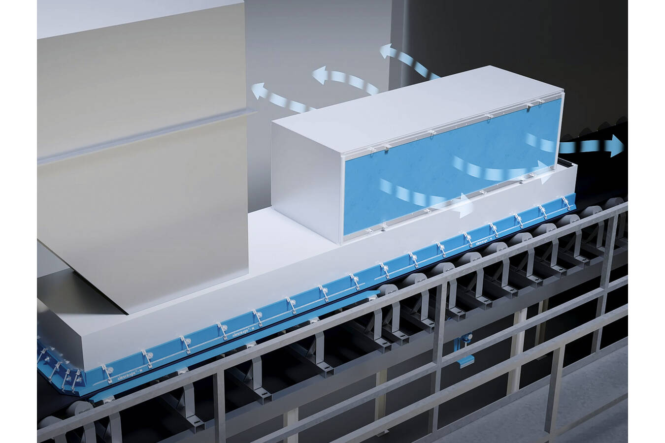 The contact-free AirScrape conveyor belt skirting system is a highly-effective side seal that lies over the conveyor belt, without contact, and creates negative pressure on the belt, due to its specially-designed blade structure. Because this system hovers freely above the conveyor belt, skirt friction and belt damage are eliminated and service life of every component of the conveyor is extended.