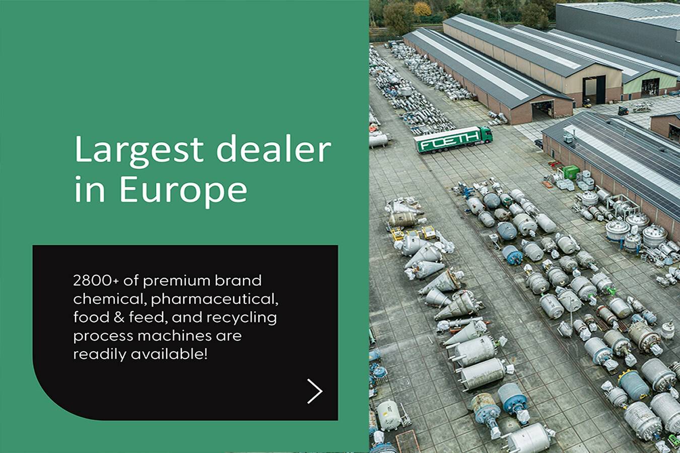 The label for buying and selling used process machines, with a focus on CO2 savings. Foeth Stock provides a broad selection of used process machines, with almost 3,000 machines readily available from stock. Driven by passion for trade and, above all, committed to doing what is right by giving process equipment a second life.