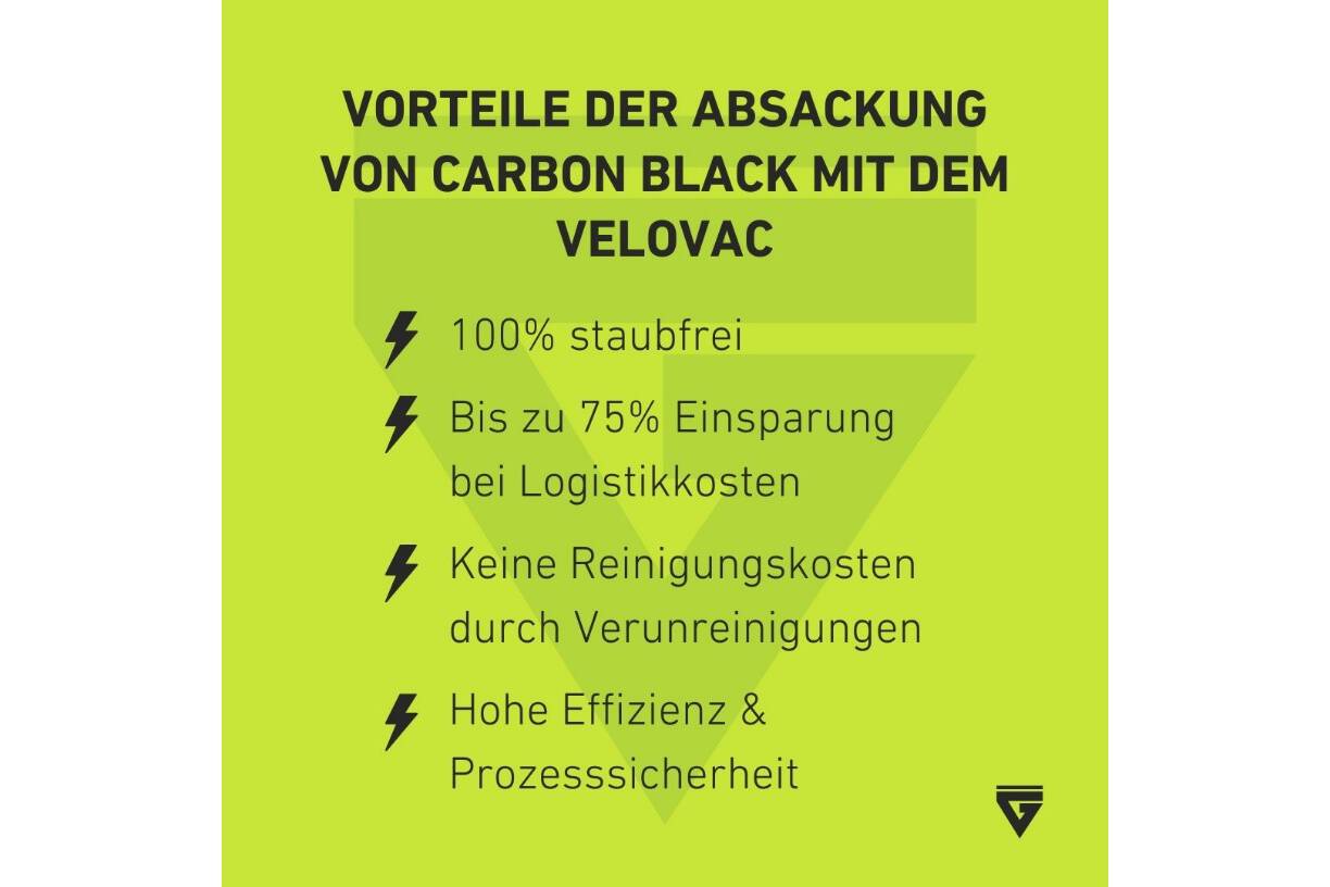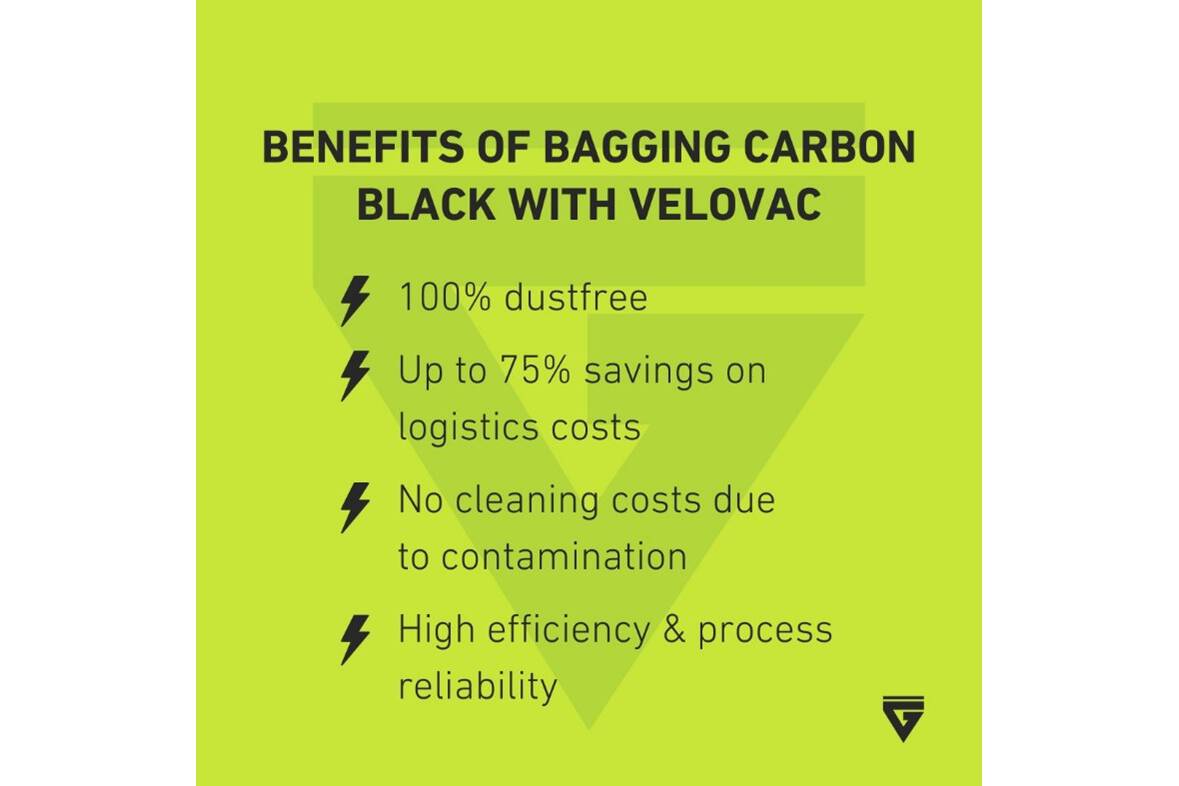 Due to its ultrafine particle size and low bulk density, conductive industrial carbon is difficult to handle and package. For comparison, a human hair is about 900 times thicker than the tiny particles with a diameter of 60 to 110 nanometers. Conventional methods result in high cleaning costs and pose a risk to employees as they are exposed to emissions. Irregularly shaped bags with air pockets also increase logistics and transportation costs.