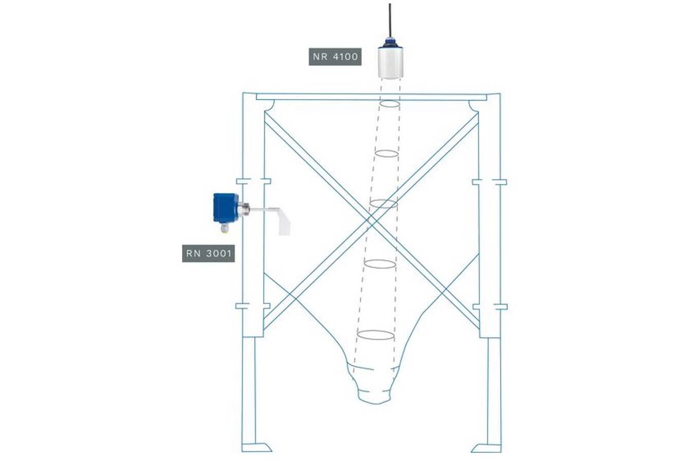 Optimised Level and Point Level Measurement; Raw materials are often stored in textile silos, where full, demand, and empty detectors are sewn directly into the fabric using a flange. The Rotonivo® 3001 serves as a dust-tight rotary paddle switch for reliable demand monitoring.