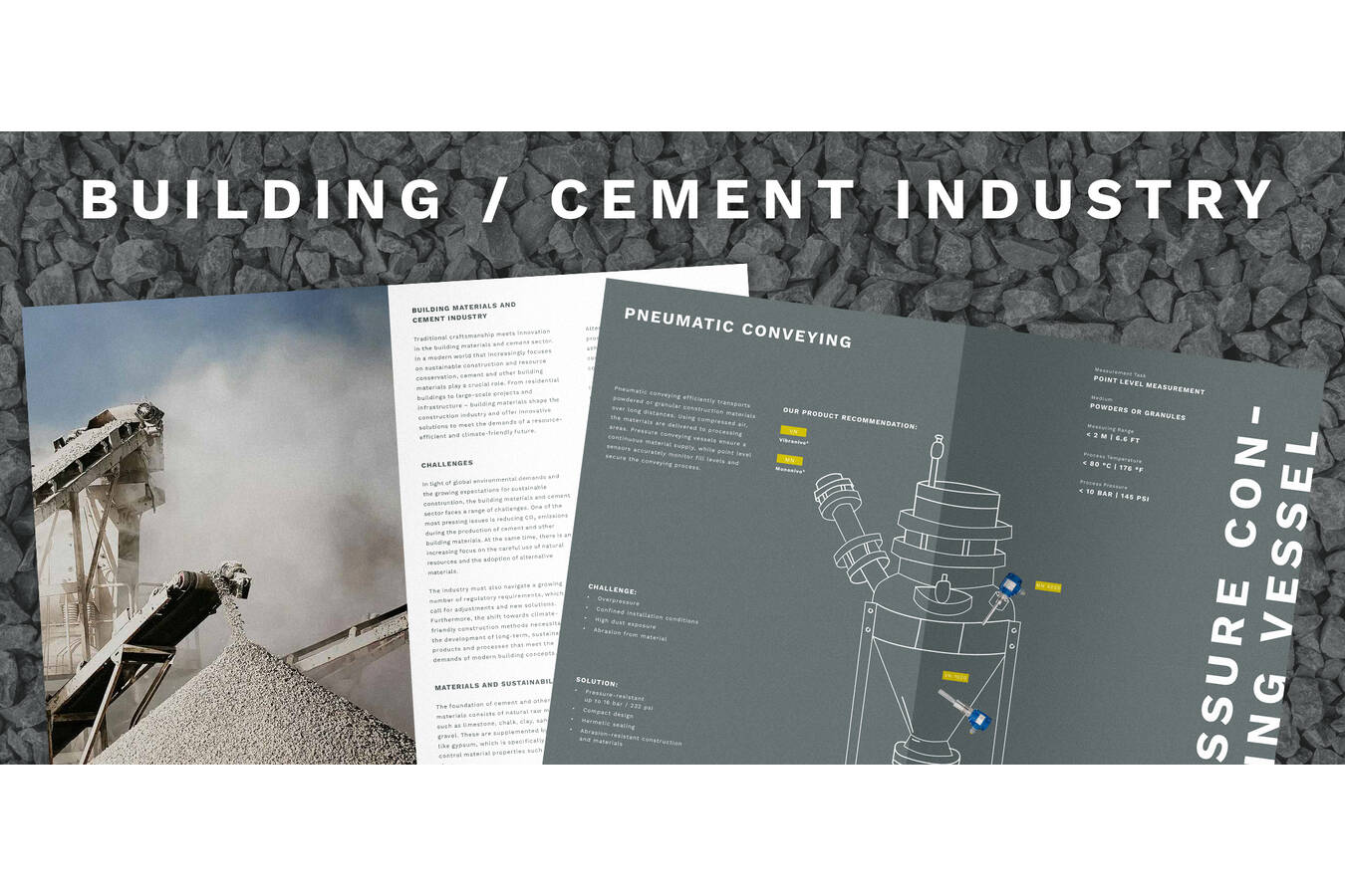In the building materials and cement industry, efficiency and process reliability are crucial. Environmental regulations and resource-efficient manufacturing processes demand precise measurement technologies. At the same time, robust solutions must withstand extreme conditions such as high temperatures, abrasive materials, and heavy dust exposure.