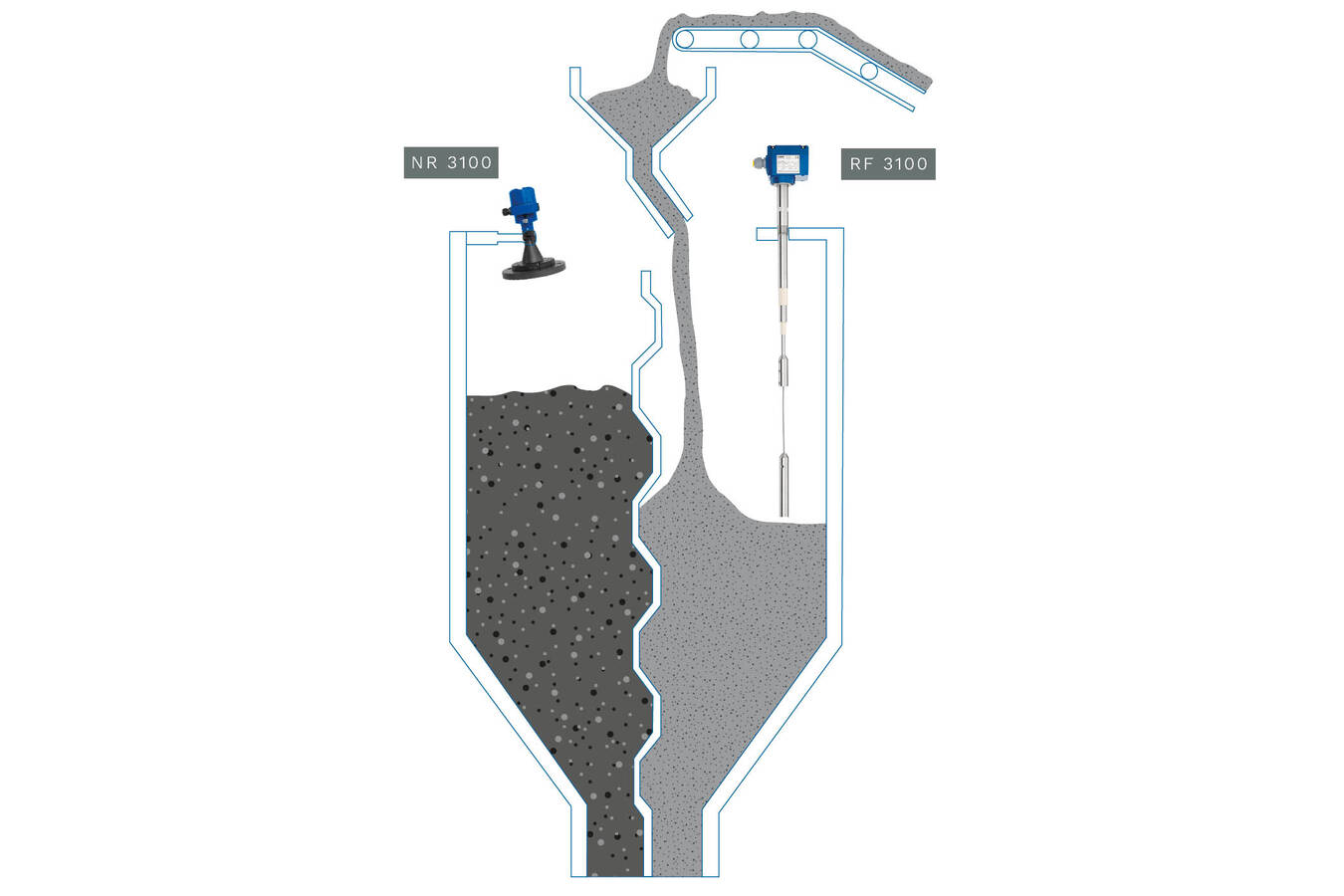 - NivoRadar® radar sensors: Non-contact level measurement for large measuring ranges and tall silos.