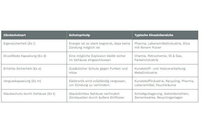 The type of explosion protection used depends on the specific protection principle and the area of application – as different industries, media, and Ex zones have varying requirements for equipment safety.