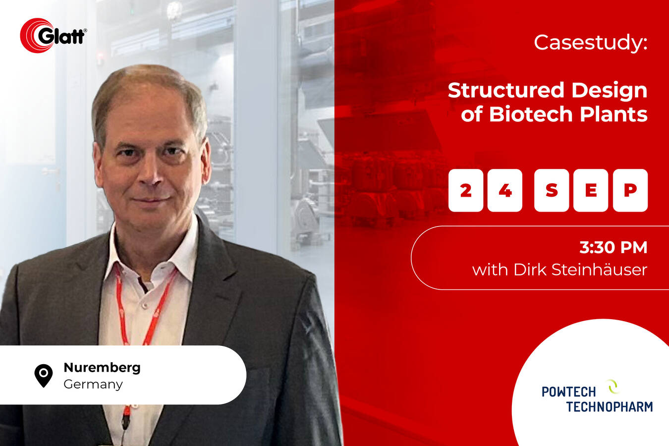 At the trade fair’s Stage Talks, Glatt experts will present sustainable approaches to pharmaceutical engineering. Dirk Steinhäuser, Deputy Branch Manager at GIT Dresden, will use a case study to provide an overview of the company’s structured and flexible planning approach for biotechnology projects. The biotechnology industry is dynamically developing new products for pharmaceuticals, nutritional supplements, food and bio-based chemicals. Fast and reliable scaling methods from laboratory to pilot scale for transfer to commercial production are crucial in this context (24 September 2025, 3:30 p.m., Stand 10-356).