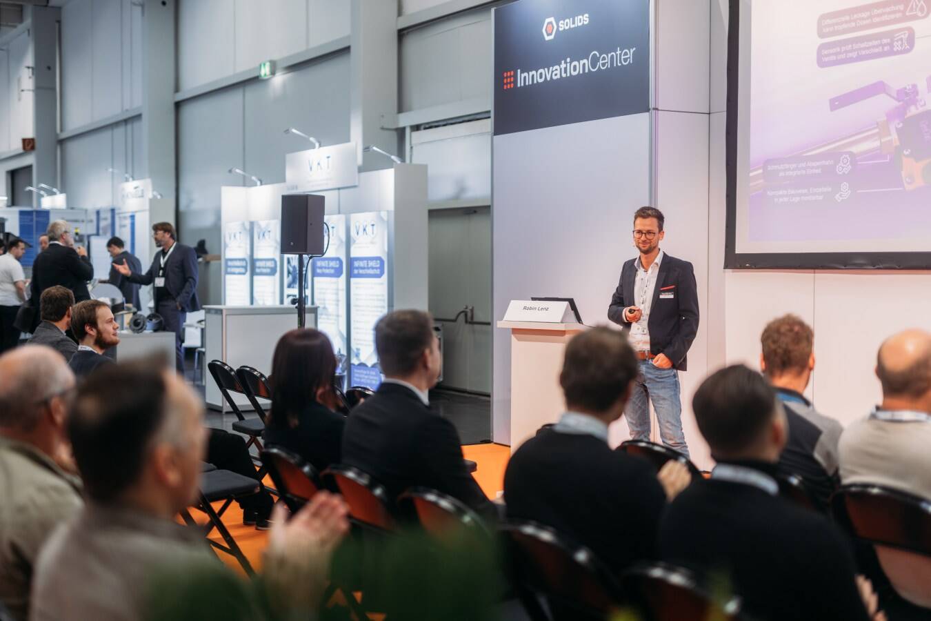 A practical program of lectures and discussions runs on both days. At SOLIDS Dortmund, the InnovationCenter, ImpulsCenter, and SolutionCenter offer technical contributions on research, trends, cyber security, process optimization, sustainability, AI, corporate succession, and more.