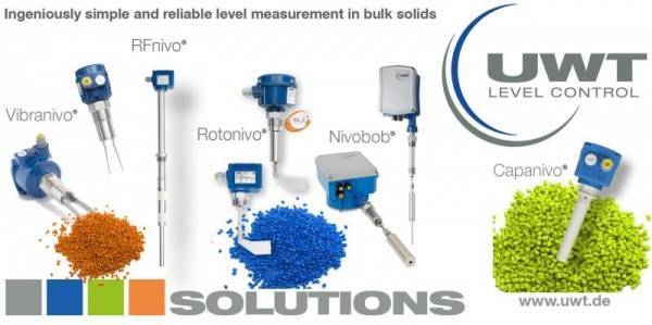 Since its foundation in 1977, the UWT GmbH product portfolio has developed and refined to provide solutions for a wide range of industries. Industries such as the food industry, plastic applications, cement plants, chemical industry, wood and rubber sector, environmental plants, power plants, etc. The company is ISO 9001: 2008 certified. UWT continually expands its portfolio of product certifications with particular regard to international markets. Features such as universal voltage or the hygiene approval ”EHEDG” as well as specialised solutions allow UWT to effectively solve difficult applications in the entire bulk material handling industry. A recent new product development is the RFnivo® 3000. This is a capacitive level switch which allows through its many variations, custom made solutions for all bulk materials applications. The simple commissioning with automatic calibration is particularly user-friendly.
