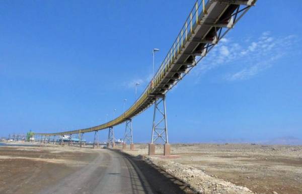 The process is practically free of faults and, above all, safe: trucks or trains transport the mining commodities from the mines to the ore storages, from where they are transported to the open access station. Here, the concentrates are received by a feeding 43-m belt conveyor that transfers it to the Pipe Conveyor at a height of 6 metres.