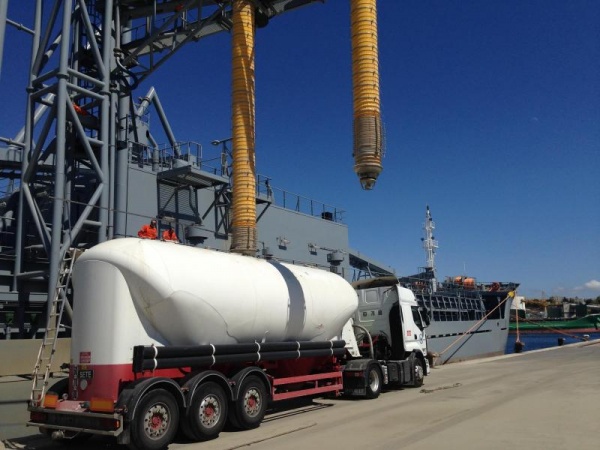 Ship loads of cement can be transferred efficiently and dust- free into silos using a pneumatic loading and unloading facility. These facilities can be equipped with a loading chute that is able to fill bulk trucks and/or railcars.