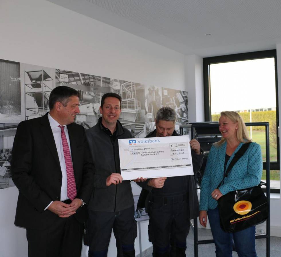 Every year, the employees of RHEWUM GmbH and the Management are committed to non-profit associations at the Bergisch city triangle production site. In 2018, the donation of 2,000 euros went to the medical child protection centre (German: ärztliche Kinderschutzambulanz e.V.).