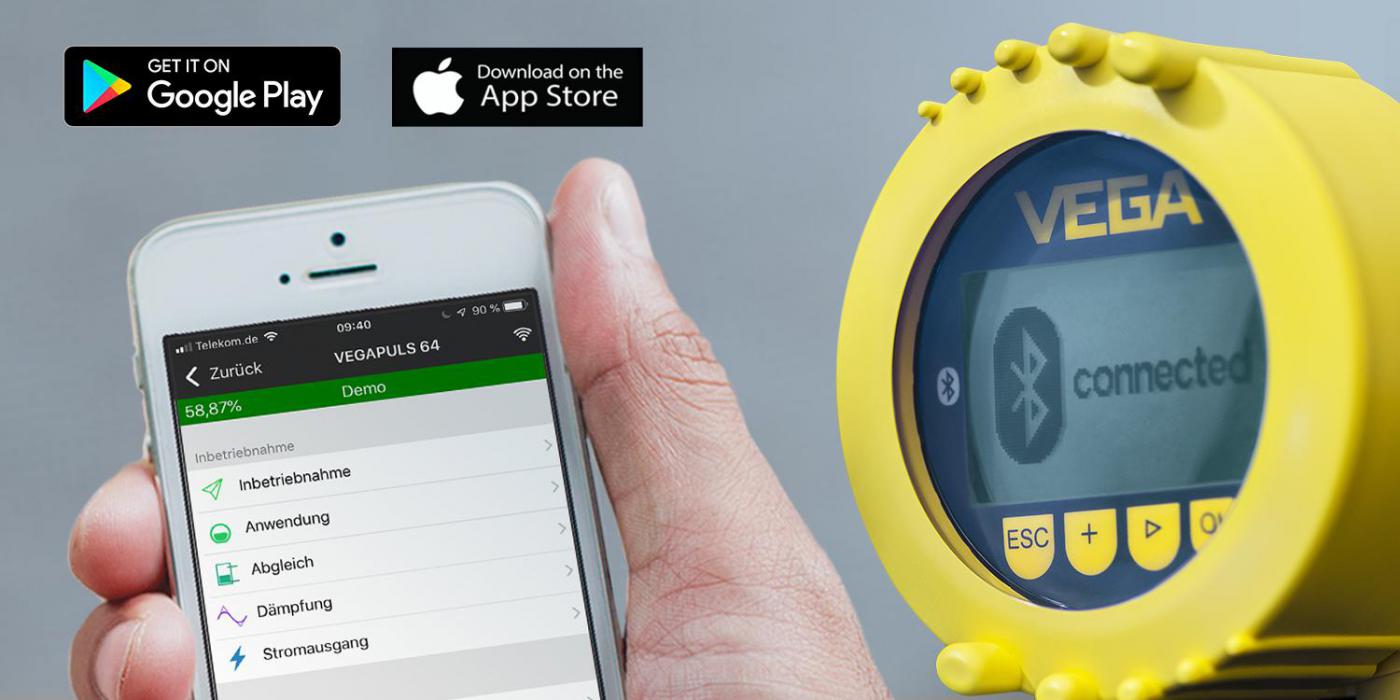 Reliable remote operation: A Bluetooth function integrated into the indicating and adjustment module of the radar sensor allows convenient and safe operation as well as display and evaluation from a distance of up to 25 meters. All you need is the free VEGA Tools app and a smartphone or tablet.