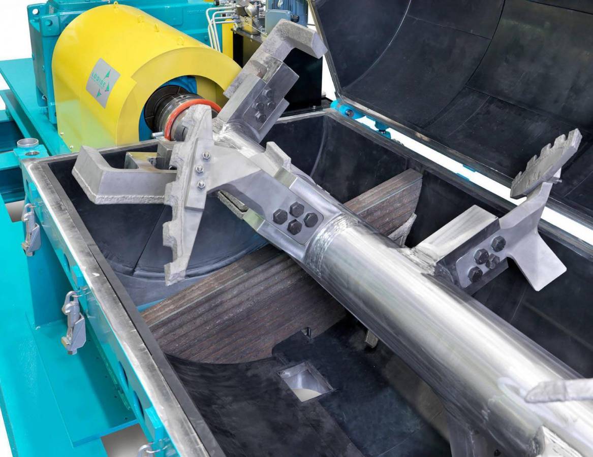 One example at the booth (Hall 4 / F23) is the Lödige Ploughshare Mixer® FKM 600 with a drum volume of 600 litres: Specially designed for heavy and coarse, the mixer is outfitted with extremely wear-resistant materials. It has a removable inner rubber lining as wear protection for the cylindrical drum and for the head pieces. The Ploughshare mixing tools are equipped with a hard metal welding made of tungsten carbide. In this way, a Vicker’s hardness of more than 3,000 is achieved, which leads to a considerable increase in service life.