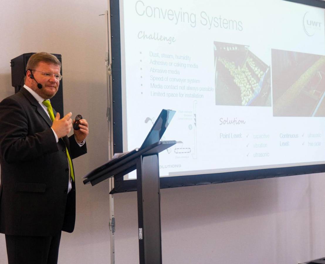 UWT GmbH presented the latest technology highlights for continuous and point level measurement – as always in true Bavarian style – including booth activities as the Bavarian Nailing Game.