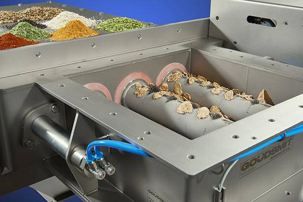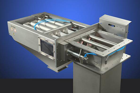The automatically cleanable ‘Easy Clean flow’ magnet from Goudsmit Magnetics of Waalre recently underwent a redesign. This magnetic separator removes metal particles and weakly magnetic stainless steel particles from powders as fine as 30 µm in the food, chemical, ceramic and plastic industries. The Easy Clean flow magnet is suitable for large product flows and distinguishes itself by the very high magnetic flux density of over 12,000 gauss at the contact surface of the bars. These bars come into direct contact with the product and have a deeply penetrating magnetic field that effectively makes powders and granulates metal-free at high flow rates. The magnet is dustproof to an overpressure of 0.5 bar and has a simple electro-pneumatic controller. The user-friendly cleaning requires 6 bar air and 24 VDC start signals.