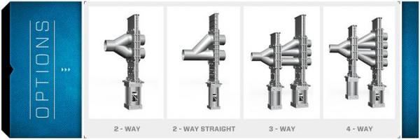 The Vortex Quantum Series Wye Line Diverter is specifically engineered to handle dry bulk solids in vacuum or dilute phase pneumatic conveying systems with pressures up to 15 psig (1 barg) depending on size. A full flow orifice provides unrestricted conveying of material. The live-loaded seals are shielded from abrasion by a metal insert.