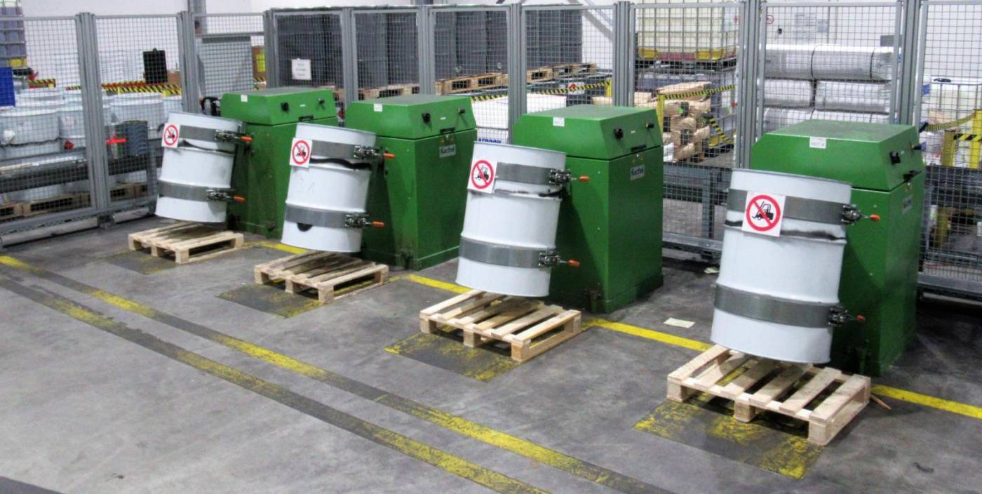Since 2015 this innovative company uses electrically tilting Mixomat c-SE drum blenders from FUCHS Maschinen AG for homogenising solid matters and solvents. The Mixomat c-SE drums are used in LORD’s production process to blend raw materials characterised by an extremely solid deposit. FUCHS is glad to announce the integration of another two electrically tilting drum blenders in the production process of the company. In the meantime, a total of 8 electrically tilting Mixomat c-SE drum blenders are being used in LORD’s four-shift operation, blending a total of 2800 one-way steel drums of 200 litres per year.