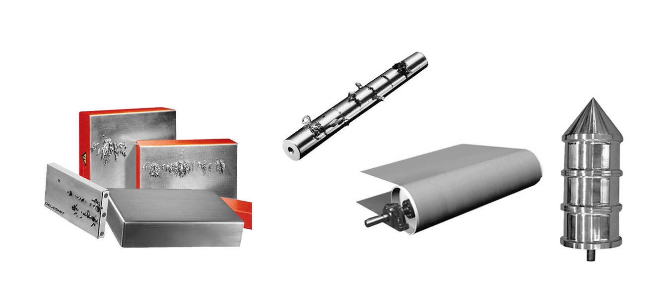 You find cylindrical magnets in our bullet magnets, magnetic drum separators, magnetic head pulleys and eddy current non-ferrous separators. With the exception of the bullet magnet, these magnets dispose of the captured metal particles directly and continuously. They are therefore capable of separating or sorting large quantities of metal contaminations.