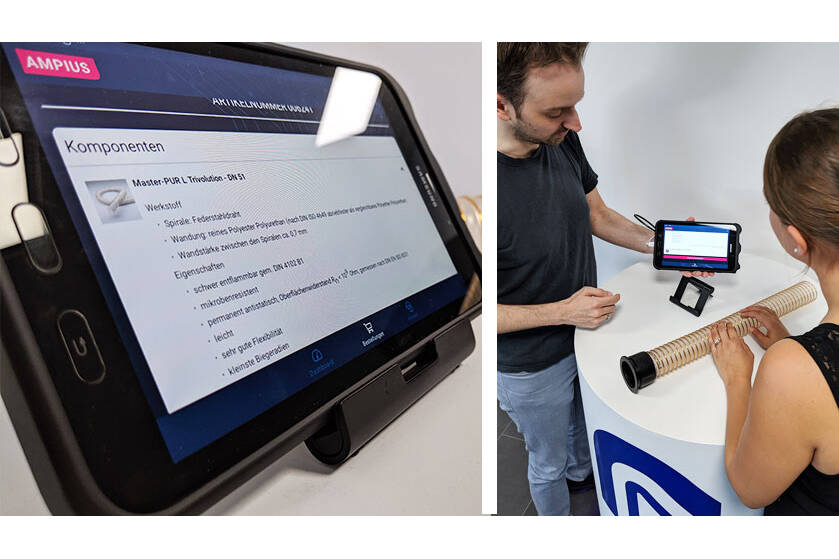 The AMPIUS® app can be used to automatically read the product signature of the hose system, which in a basic version is equipped with a digital interface as standard. In this way, technical data or "life cycle data" such as production or shipping date can be queried or requests for quotations can be made at the push of a button.
