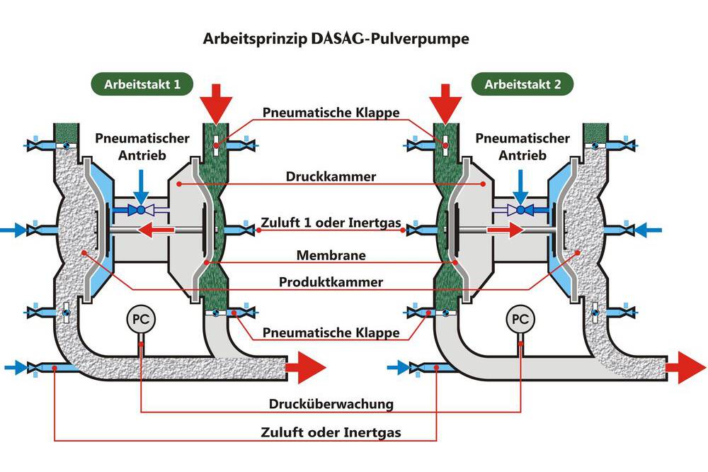 The DASAG powder pump has been designed specifically for conveying bulk goods based on the principle of a double diaphragm pump.