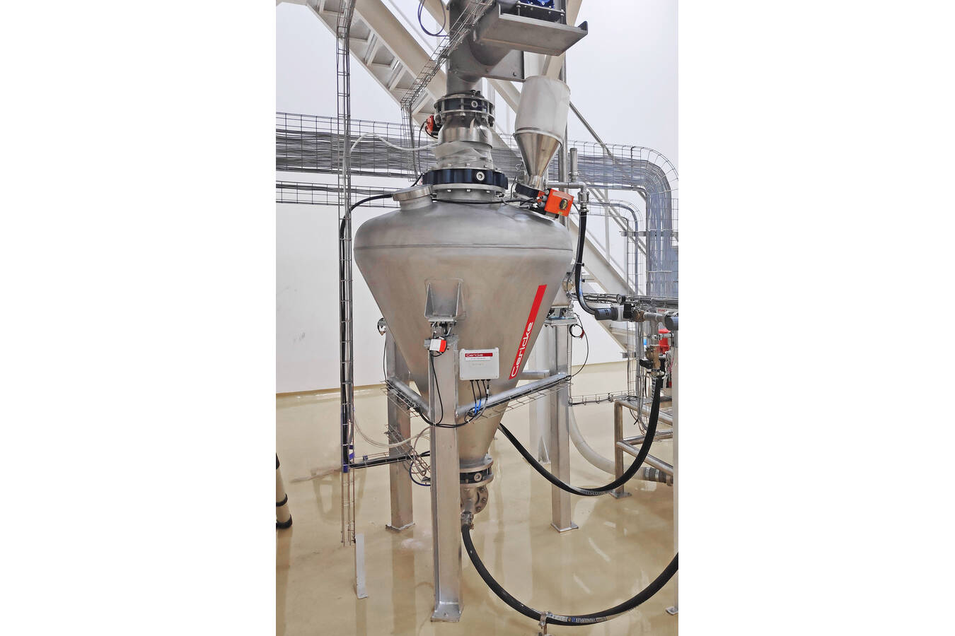 Transport of poorly flowing cocoa powder  Reliable and food-safe transport of poorly flowing cocoa powder for beverage production; pneumatic conveying, storage, feeding and mixing system.
