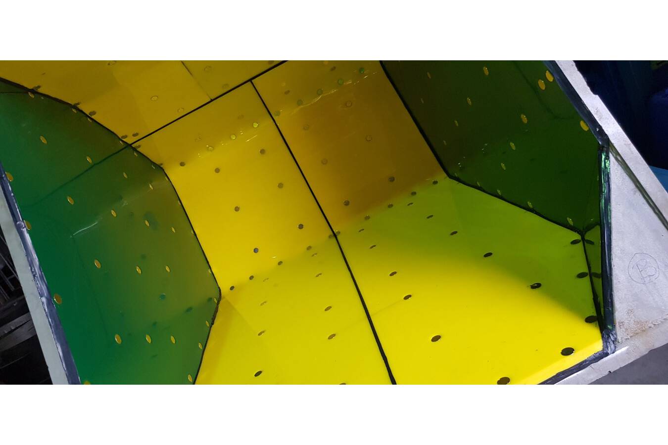 We understand that wear issues vary depending on factors such as impact, angle of attack, height and the nature of the product. That is why we offer Kryptane cladding in various thicknesses and Shore-A hardnesses, so we can find the right solution for every situation. Our service goes beyond advice; we also offer on-site installation, so that you can be completely relieved of all your worries.